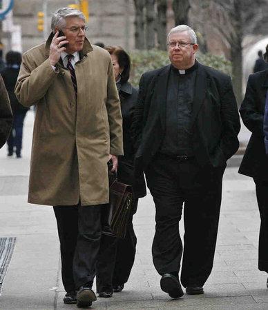 Msgr. William Lynn arrives at court with his attorney, Tom Berkstom