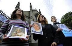 Therese Albrecht, Barbara Blaine and Barbara Dorris, members of the Survivors Network of those Abused by Priests, hold portraits of themselves as youths at a protest in 2010 outside St. Mary's Catholic Cathedral in Edinburgh, Scotland.