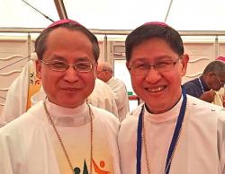 Bishop John Baptist Lee Keh-Mien of Hsinchu City, Taiwan, left, and Archbishop Luis Antonio Tagle of Manila, Philippines, are scheduled to speak at the 50th International Eucharistic Congress in Dublin (Photo courtesy of Bishop Cornelius Sim of Brunei)