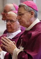 Kansas City-St. Joseph, Mo., Bishop Robert W. Finn concelebrates Mass March 12 with other bishops during "ad limina" visits to the Vatican. (CNS photo /Paul Haring)