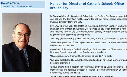 Brother Whelan, meanwhile, rose through the ranks of the Church, becoming a Commissioner for the Catholic Education Commission of NSW. He was the director of schools in the Broken Bay Diocese when he retired in March.