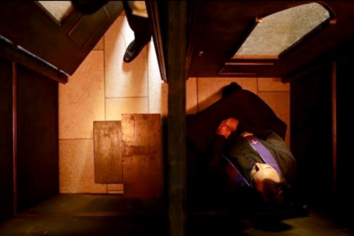 Gibney illustrates the acts of abuse through hazy images and shadowy figures. Flowing cassocks catch the light as a figure meant to be Murphy tiptoes through the boys’ dorm late at night to find a boy to molest while the others lay still in their beds pretending not to notice. At one stage, according to a victim’s recollections, Murphy relocated the confessional at St. John’s from the tiny cabinet to a closet. Gibney illustrates the point with a young boy kneeling in front of a character portraying the priest. But he is not asked to pray. Instead, he is to open the priest’s cassock and perform fellatio.