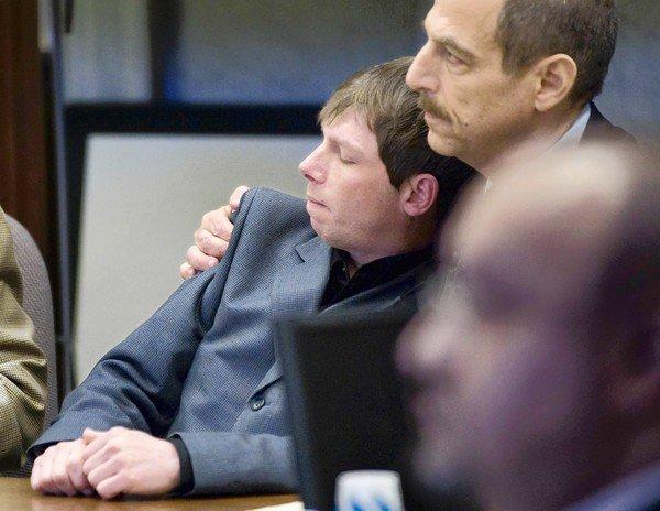 Kerry Lewis, left, leans against his lawyer, Paul Mones, after a jury found the Boy Scouts of America negligent for repeated sexual abuse by an assistant scoutmaster.