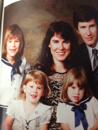 Left to right: Emma Foster (6); Aimee Foster (2); mother Chrissie Foster; Katie Foster (4) and father Anthony Foster. Emma and Katie were abused by a Catholic priest from an early age. (Family supplied: Hell on the Way to Heaven)