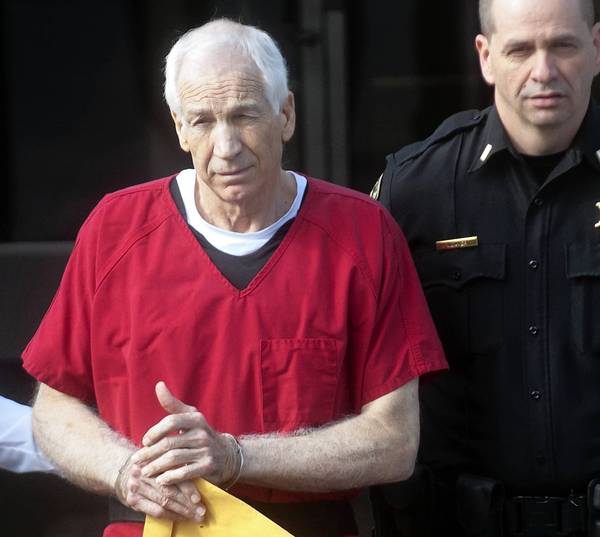 Jerry Sandusky leaves the Centre County Courthouse in Bellefonte after being given a 30-60 year sentence on Tuesday October 9, 2012. (MICHAEL KUBEL, THE MORNING CALL / October 8, 2012)