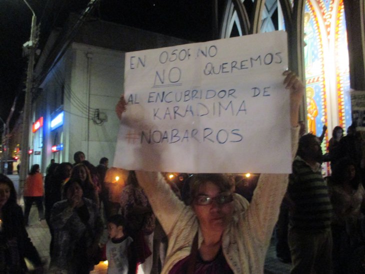 La noche de ayer miercoles cerca de 200 personas volvieron a protestar contra la investidura de Juan Barros como obispo de Osorno en el frontis de la Catedral San Mateo.