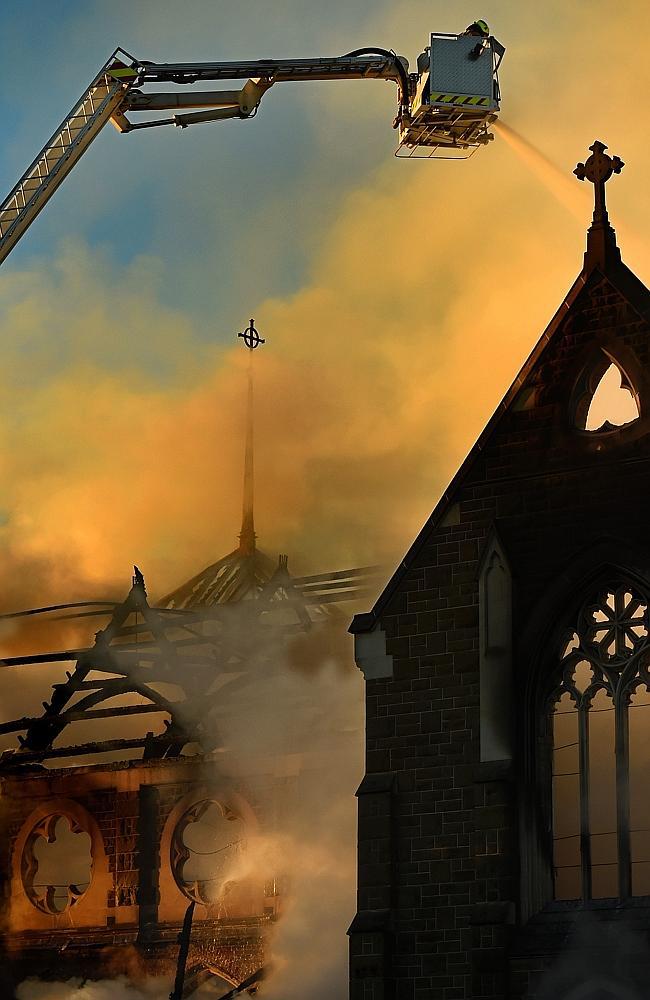 Early yesterday, emergency crews rushed to extinguish a blaze at St Mary’s in Dandenong a fire was lit on the church’s alter and another in the storeroom of the 151-year-old building.