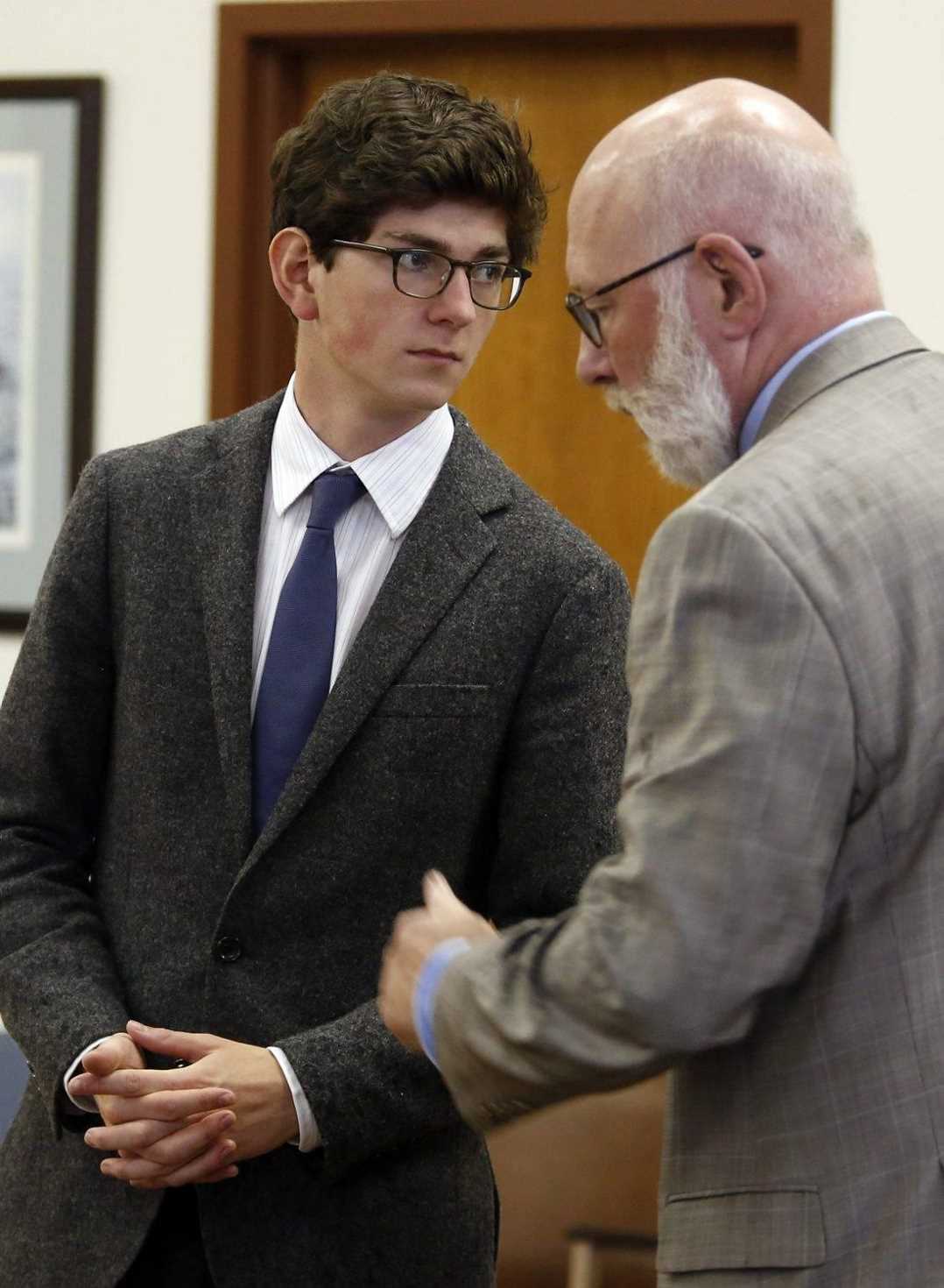 | Former St. Paul’s School student Owen Labrie listens to his lawyer, J.W. Carney, during his trial in Merrimack County Superior Court Tuesday. Labrie is charged with raping a 15-year-old freshman as part of the “Senior Salute,” a practice of sexual conquest at the prestigious St. Paul’s School in Concord. |
