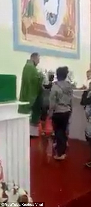 None of the adults inside the church, including the priest's helpers, did anything to intervene.