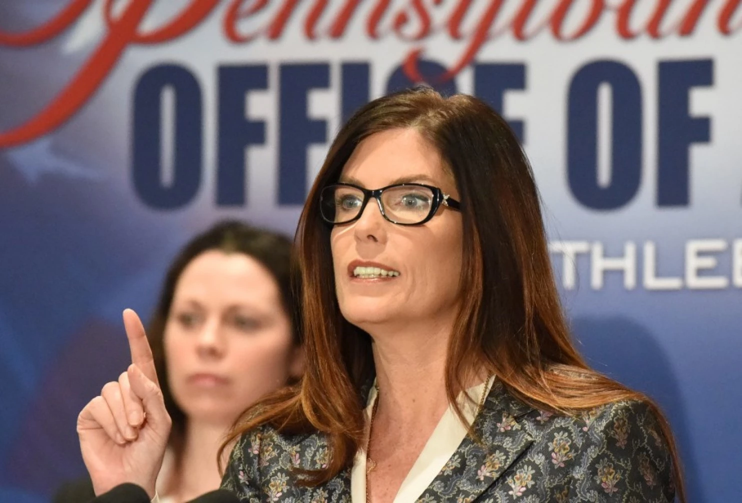Pennsylvania Attorney General Kathleen Kane speaks about the 147-page report on alleged sexual abuse in the Altoona-Johnstown Diocese. The report was made public at a news conference Tuesday. (J.D. Cavrich/Altoona Mirror via AP)