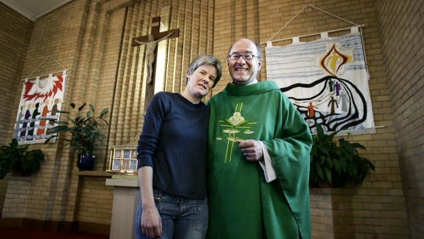 Father Bill Edebohls, formerly an Anglican was one of Melbourne's first married priests. Pictured in 2005 with his wife Robyn St Pius. Photo: Joe Armao