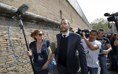 | Journalist Emiliano Fittipaldi walks to his trial April 6 at the Vatican. |