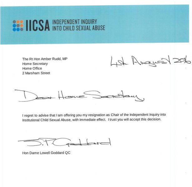 But days after coming under renewed criticism for spiralling costs and delays, Dame Goddard, who was given a ?500,000 salary package, offered her resignation in a letter to the Home Secretary.