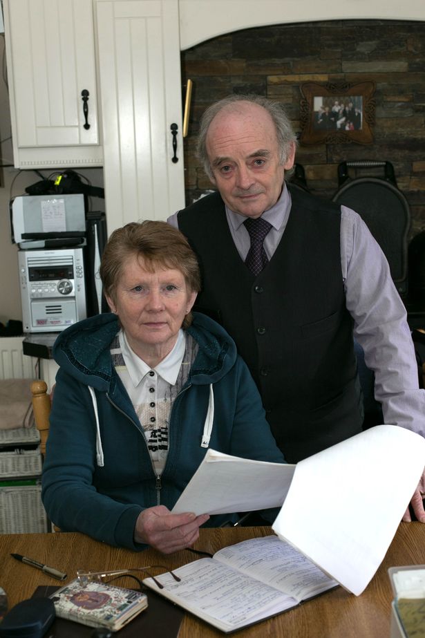 Catherine Corless and her husband Aidan reading a copy of the report from the Commission of investigation this morning at their home in Brownsgrove just outside Tuam (Photo: Andy Newman)