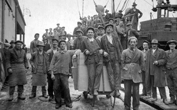 | Irish men working on the Limerick Docks with construction, c1925. |