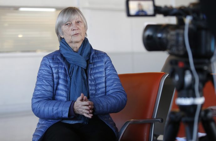 Catherine Bonnet, French child psychiatrist and a member of the Pontifical Commission for the Protection of Minors, gestures as she speaks during an interview with the Associated Press at Charles de Gaulle airport outside Paris, France, Sunday, Feb. 4, 2018. (Credit: AP Photo/Michel Euler.)
