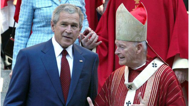 | Mr McCarrick (R), here seen with former US President George W Bush, had a reputation in Washington as someone who could work with powerful figures from all sides |