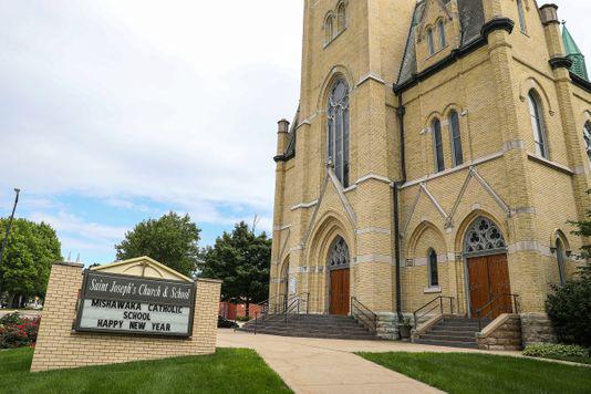 St. Joseph Catholic Church in Mishawaka, Ind., is one of many churches under Rev. Kevin Rhoades, bishop of the Fort Wayne-South Bend Catholic Diocese, seen Thursday, Aug. 16, 2018. Photo by Jenna Watson |