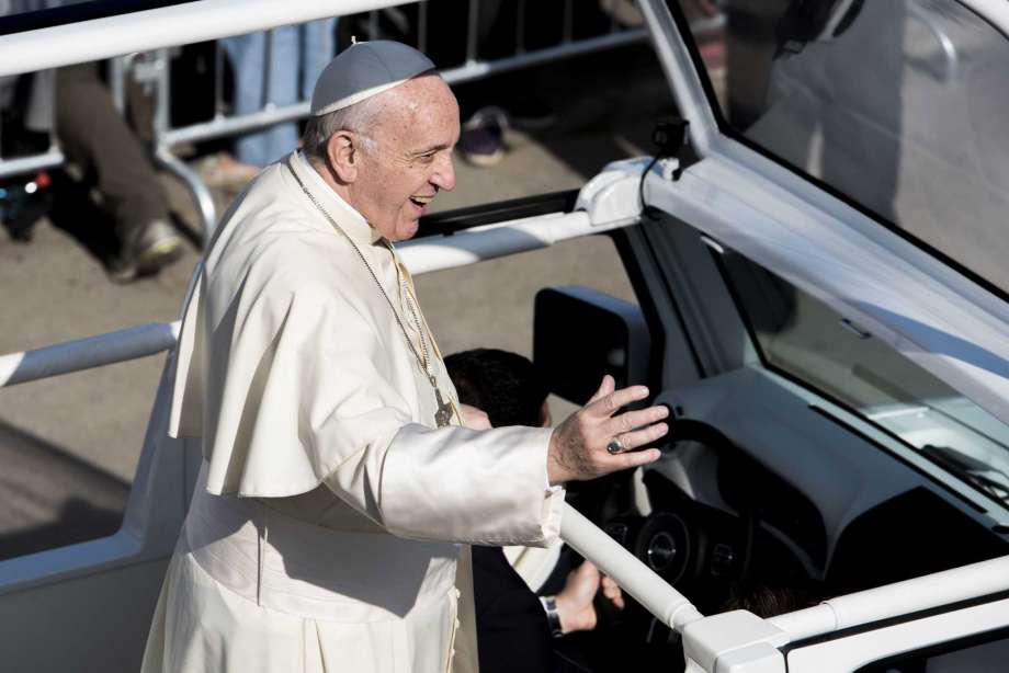 Pope Francis waves to attendees from a motorcade before mass at O'Higgins Park in Santiago, Chile, on Jan. 16, 2018. Photo by Tamara Merino |