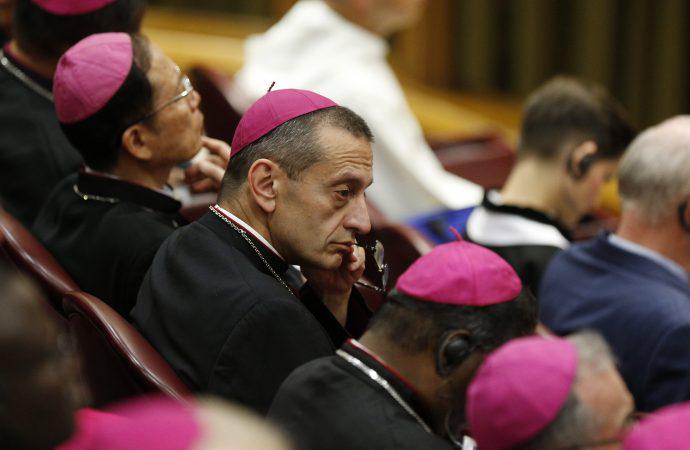 | Bishop Frank J. Caggiano of Bridgeport, Conn., attends a session of the Synod of Bishops on young people, the faith and vocational discernment at the Vatican Oct. 11. |