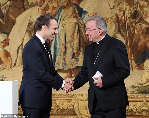 Ventura has been based in Paris since 2009 and serves as a diplomat for Pope Francis. He is pictured with French President Emmanuel Macron in January last year