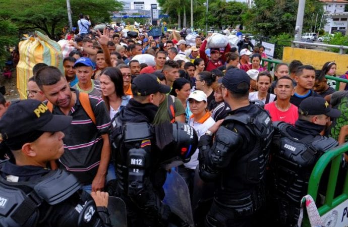 Colombian riot police block the way to the Colombian side in the Colombian-Venezuelan border in Cucuta April 2, 2019. (Credit: Ferley Ospina, Reuters via CNS.)