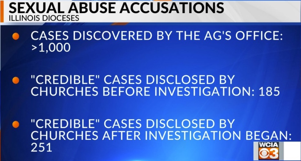 In the investigation spanning three years now, the Illinois Attorney General’s office has uncovered at least a thousand child sexual assault accusations never disclosed by the catholic church.