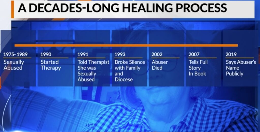 Schmidt said she grew up under the wing of her pastor and abuser at St. John Vianney Parish. She said he sexually assaulted her for more than a decade.
