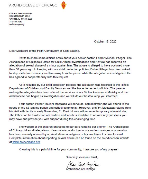READ: Full letter from the Archdiocese of Chicago to St. Sabina Parish