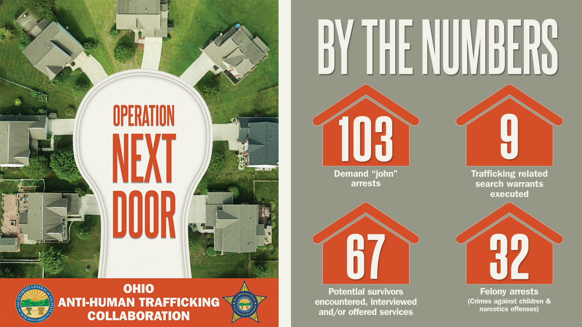 “Operation Next Door was named to highlight the proximity and prevalence of human trafficking,” Yost said. “Too often, we are lulled into the false narrative that these crimes happen only in the shadows. This is simply not true – human trafficking occurs in plain sight and, unfortunately, may even be fueled by your co-workers or neighbors.”