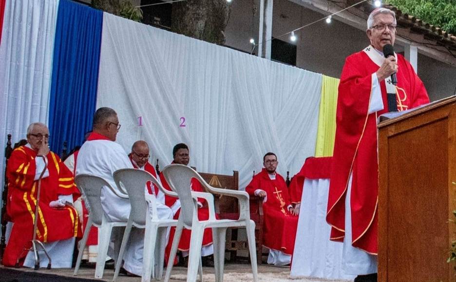 At center, holding a wooden crosier, Cardinal Adalberto Martínez Flores, archbishop of Asunción, Paraguay at the parish of San Blas, December, 2025. Social media of the Oblates of Mary Immaculate.