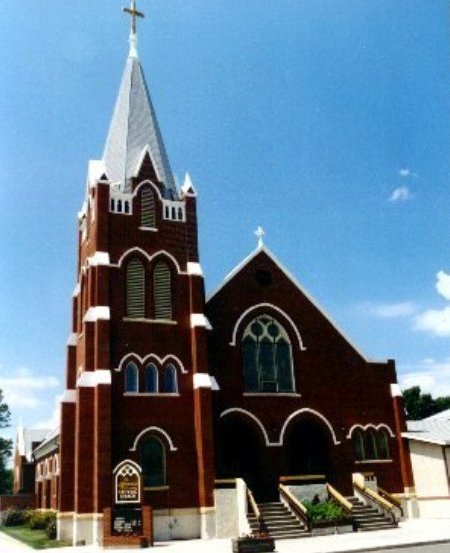 in front of St. Alphonsus church in Langdon ND, where Rev. Brendan