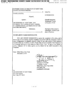 Pamela Hayes v. Archdiocese of New York, Ann Peterson, Parish of Saint Joseph [Middletown NY], St. Joseph School, and Ursulines of the Eastern Province, Complaint, December 6, 2019, Index No. 69940/2019