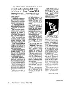 Patt Morrison. Priest in Sexual Scandal was Advised to Stay out of U.S. Fr. Santiago Tamayo. Los Angeles Times, March 28, 1991.
