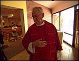Mr. ZLAKET: This is an issue that has never been decided in the history of this country. We're talking about a legal issue that is a first in 200 years of legal history, and it is certainly a first for the Catholic Church in America, so it ought to be given the utmost consideration. VALENTE: This parish worker suggested that the bishop compose a special prayer for the diocese, seeking guidance through the financial crisis. It is now said at every mass. Parish Worker (Praying): Merciful God, our hope in adversity, our comfort in sorrow, our strength in weakness. Guide us, your people. Give us new life and hope ... Bishop KICANAS (Praying): Lead us through these times to become a stronger, wiser church ... Monsignor CAHALANE (Praying): Help us to give greater encouragement to our brothers and sisters in their need. We ask this in the name of Jesus the Lord. Bishop KICANAS: To make sure that the work of the Church is carried on -- that's the struggle: how to do that, knowing now that there are people within the very household of the Church who have been hurt and that we must try to help to heal. And yet, how do we also carry on the tremendous work of the Church? (To woman parishioner): How are you doing, dear? Careful now ... UNIDENTIFIED WOMAN: Glad to be here. VALENTE: For RELIGION & ETHICS NEWSWEEKLY, I'm Judy Valente in Tucson. |