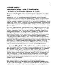 Archdiocese of Baltimore, List of Priests and Brothers Accused of Child Sexual Abuse, June 23, 2022, Cached on November 17, 2022