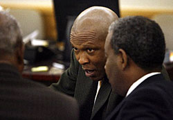 "I think that the evidence was strong, and the defendant was guilty," prosecutor Sean Colston said after the verdict was announced. "That's what turned the case." Mr. Colston said that anything less than the maximum sentence would be inappropriate for Mr. Hornbuckle, founder of Agape Christian Fellowship church. Two of his victims were church members, and one testified that she was a virgin when the minister drugged and raped her shortly after her 21st birthday. Defense attorney Mike Heiskell said that he never argues with the jury's decision but that he would try to convince them that probation is a fair sentence. Mr. Hornbuckle has no prior criminal record. "We hope the jury will see the redemptive side of Terry Hornbuckle," Mr. Heiskell said. The three women all testified that Mr. Hornbuckle drugged them. Two said they were raped either while they were blacked out or groggy from a drug. One of the victims tested positive for benzodiazepine, a class of drug that can cause drowsiness and amnesia. Defense attorneys argued during the trial that Mr. Hornbuckle was a "playboy" outside the pulpit and that any extramarital sex was consensual. Mr. Hornbuckle's wife, Renee, who is now senior pastor at Agape, declined through a spokesman to comment after the verdict. Charles Richardson, chairman of the Agape board of directors, said church officials would make a statement after the trial ends. Mrs. Hornbuckle, who sat through the entire trial – including testimony about her husband's womanizing and drug use – sat ramrod straight when the verdict was read by state District Judge Scott Wisch. The handful of church members remaining in the courtroom held hands, a common practice during Agape services. Mr. Richardson grasped Mrs. Hornbuckle's shoulder and murmured: "I'm sorry. I'm really sorry." In accordance with Judge Wisch's warnings, there was no crying or other overt display of emotion in the audience when the verdict was read. Church members had filled the courtroom at the beginning of the three-week trial, but the number had dwindled to barely more than a half-dozen at the end. Leon Haley, one of Mr. Hornbuckle's attorneys, said this week he was hopeful of a not-guilty verdict. He said that a lawyer's rule of thumb is that the longer a jury deliberates, the better the chance that it will find the defendant not guilty. The prosecutors, defense attorneys and judge said they had never participated in a case in which a jury deliberated so long. Jurors began discussing the cases about 4:15 p.m. the previous Tuesday. They sent 41 notes to the judge asking to look at evidence, requesting legal definitions and calling for copies of testimony. Judge Wisch said this week that there was no indication that the jury was deadlocked despite the large number of notes and long deliberations. About 3:30 p.m. Tuesday, the jury sent its 42nd note, saying that it had reached a unanimous verdict. For two weeks, the jury listened to sordid and sometimes explicit testimony about the three separate rape cases. The first victim, a longtime Agape member, told jurors that her mistake was trusting the man who baptized her. The woman said Mr. Hornbuckle lured her to a Euless apartment, where he fed her drugged punch after she rejected his repeated requests to "get her drink on." After waking up naked, she tried to get dressed but was held down by Mr. Hornbuckle and raped, she said. The second victim, who used the pseudonym Jane Doe on the witness stand, said that Mr. Hornbuckle began counseling her when her boyfriend left. She said she didn't want to have sex with the minister but that he exploited her emotional vulnerability and his position of authority. The third victim, whose pseudonym was Kate Jones, was not an Agape church member. She said she met Mr. Hornbuckle at a Bedford health club, where he used a fake name and claimed to be a counselor for Dallas Cowboys rookies and a former NFL player. She testified that she and Mr. Hornbuckle smoked methamphetamine before he drugged and raped her in her home. The punishment phase started late Tuesday afternoon with testimony about a glass pipe, lighter and bag of methamphetamine in Mr. Hornbuckle's Cadillac Escalade after he was arrested. Mr. Heiskell noted that there has already been testimony about Mr. Hornbuckle's drug problems, and he called his client a "meth addict." Mr. Hornbuckle's bail was revoked twice for failing drug tests and once for failing to provide a urine sample for a drug test. He has been held in the Tarrant County jail since March without bail. Testimony will continue at 9 a.m. today. Staff writer Laurie Fox contributed to this report. E-mail jmosier@dallasnews.com THE CHARGES A look at the rape charges against Terry Hornbuckle: • The first accuser, a member of Mr. Hornbuckle's church, testified that he served her fruit punch with a drug in it and that she woke up naked. The woman said that when she tried to get dressed, Mr. Hornbuckle held her down and raped her. • The second accuser, using the pseudonym Jane Doe, said her pastor made sexual advances after she went to him for counseling. She said she eventually had sex with him because it seemed easier. • The third woman, who testified as Kate Jones, said she met Mr. Hornbuckle at a fitness club. She said Mr. Hornbuckle drugged and raped her after they smoked methamphetamine together. TIMELINE 1986 – Mr. Hornbuckle founds Victory Temple Bible Church in Arlington with 15 members. 1987 – He moves his church to a vacant Dairy Queen. Nov. 26, 1988 – Mr. Hornbuckle and Renee Fowler marry. 1988 – Victory Temple moves to Fort Worth with 165 members. 1992 – Victory Temple changes its name to Agape Christian Fellowship. 1995 –Agape moves to an 8,000-square- foot building. It has 250 members. May 16, 1999 – Agape holds a grand opening for its 30,000-square-foot church called The Destiny Center. July 27, 2003-Sept. 1, 2004 – Time period in which Mr. Hornbuckle's three accusers say he ra