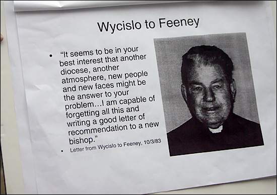 Feeney was convicted of child sexual assault in Wisconsin in 2004. A Nevada man filed a lawsuit this week against Feeney and the Las Vegas archdiocese, claiming Feeney molested him in 1984 and 1985. "We are requesting three things of Cardinal Maida," Isely said. "We want him to come clean about why he let a pedophile priest move to a new state and work around unsuspecting families. Secondly, we want a public apology regarding that priest's conduct and finally, we want the archdiocese to reach out to help those who were abused by the priest."