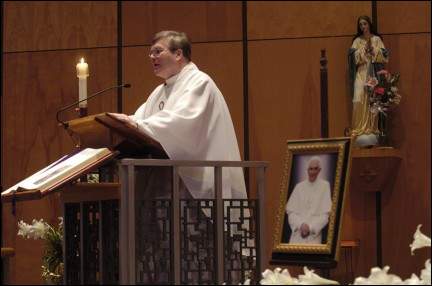 | Prayers, Questions Await Pontiff Benedict Due Tuesday for 6-Day Visit, His First to U.S. As Pontiff By Gary Soulsman News Journal April 13, 2008 http://www.delawareonline.com/apps/pbcs.dll/article?AID=/20080413/NEWS/804130366 When Pope John Paul II last visited cities along the East Coast in 1995, he was something of a superstar, met by warm, welcoming crowds who felt connected to a holy man who had traveled to the U.S. and other nations for 17 years. When Pope Benedict XVI arrives in Washington, D.C., on Tuesday, he is close to his third anniversary as pope and will introduce himself on a first visit as pontiff with lots of media attention. "One of the pluses is that people will get to know him better," said the Rev. Tom Flowers, whose parishioners at St. Polycarp Church in Smyrna have been praying for the pope.
