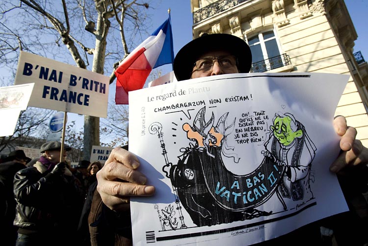 Just four years after the first German pope of the modern era took office, the relationship between two major world religions is shattered. The process of reconciliation between Catholics and Jews may have been damaged for years. Of course, Benedict has done what he could to control the damage. In his Wednesday audience last week, he addressed the subject directly: "In these days, as we commemorate the Shoah, I remember the images of my repeated visits to Auschwitz (…) While I once again express, from the bottom of my heart, my full and indisputable solidarity with our brothers, the bearer of the first covenant, I hope that the memory of the Shoah moves humanity to reflect on the unpredictable power of evil when it conquers the human heart." Despite the clarity of these words, the pope read them with barely perceptible conviction. And they did little to defuse the conflict. German Chancellor Angela Merkel dismissed the comments on Tuesday, saying that she expects more. "I do not believe sufficient clarification has been made," she said. Indeed, until this week the pope seemed not to have recognized the scope of worldwide outrage. Now, though, the volume of protest seems to have reached a volume that has even managed to penetrate the Vatican's inner sanctum. On Wednesday, almost two weeks after the controversy began, the Vatican finally issued a statement demanding that Williamson, "in an absolutely unequivocal and public fashion," distance himself from his statements denying the Holocaust before he can be fully readmitted to the Church.