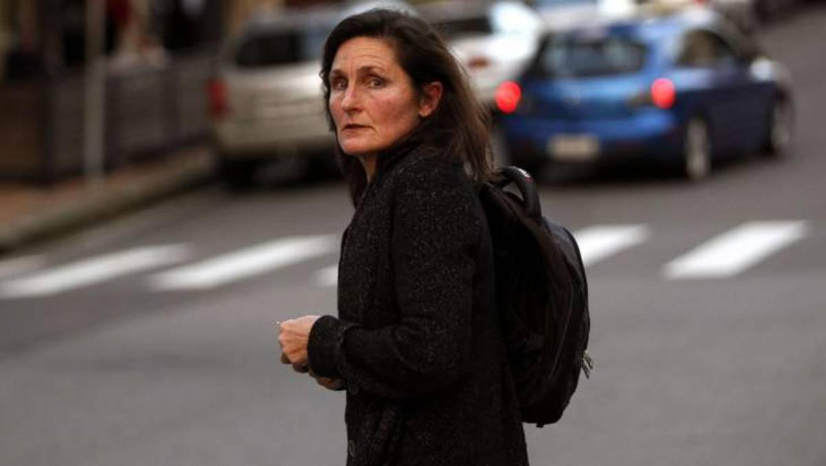 Cross-questioning ... Newcastle Herald journalist Joanne McCarthy leaves court