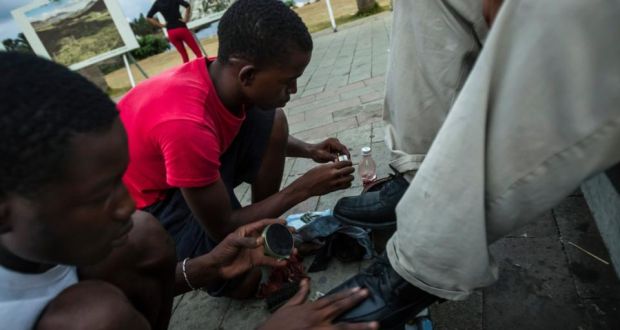 Francis Aquino Aneury ( 17), (far left), shines shoes along the promenade in Santo Domingo. Aneury claims he was 14 when he first accepted money for sexual favours from a man he later learned was Archbishop Jozef Wesolowski. Photograph: the ‘New York Times’