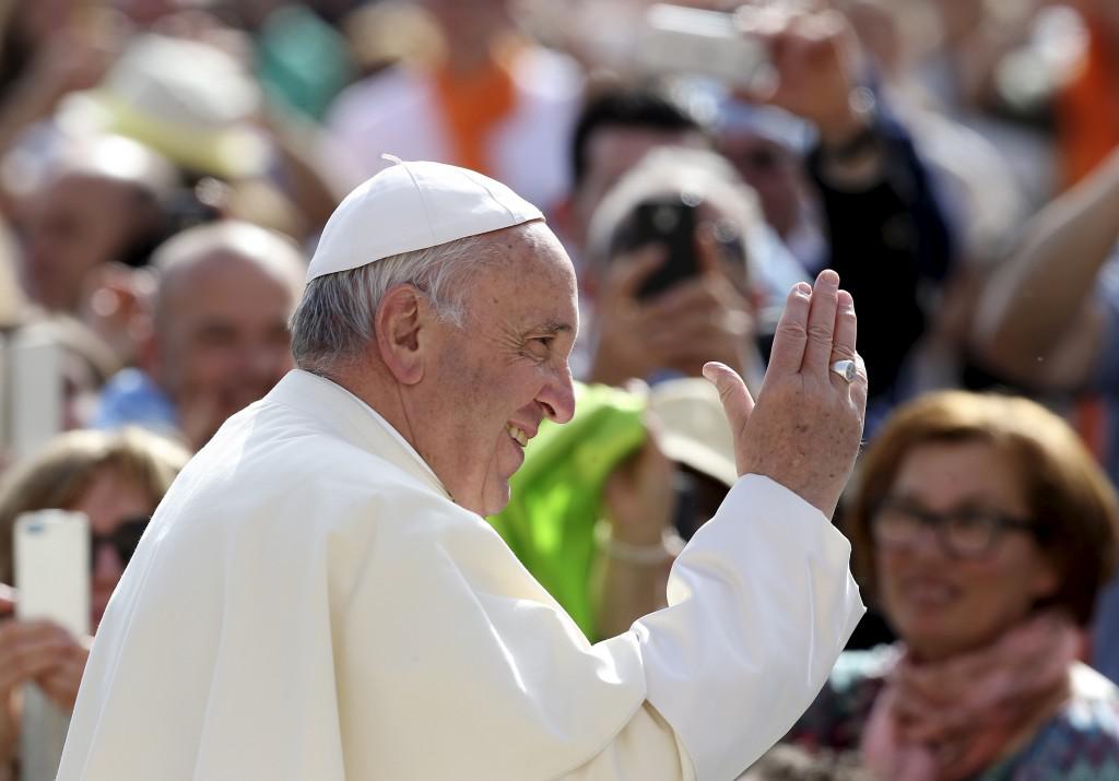 Pope Francis arrives to lead the weekly audience in Saint Peter’s Square at the Vatican April 6, 2016. Photo by Alessandro Bianchi |
