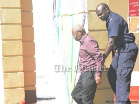 IN PHOTO: Moravian pastor Rupert Clarke being escorted from the St Elizabeth Parish Court.
