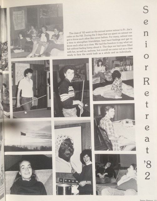 A page in the 1982-83 Archbishop Walsh High School year book, which details the Class of 1983's senior retreat to the Rev. James A. Spielman's "cabin on the hill."