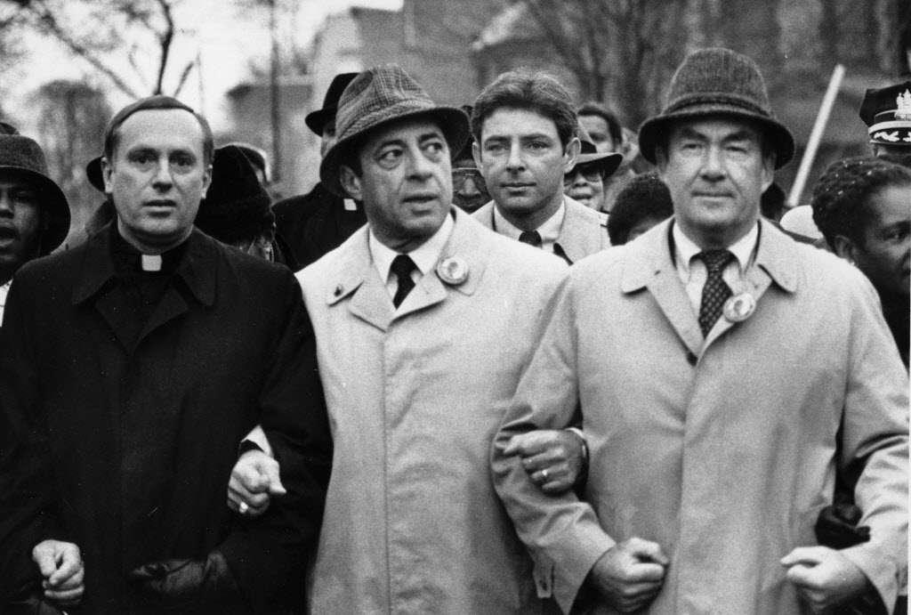 Bishop Howard Hubbard, left, Gov. Mario Cuomo, center, and Mayor Thomas Whalen, right, march in Albany's annual Martin Luther Kind Day parade Jan. 20, 1986, in Albany, N.Y. Photo by Arnold LeFevre |