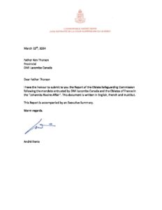 REPORT OF THE OBLATE SAFEGUARDING COMMISSION, CHAIRED BY THE HONOURABLE ANDRÉ DENIS, March 15, 2024, Released March 19, 2024, centred on the Joannès Rivoire affair