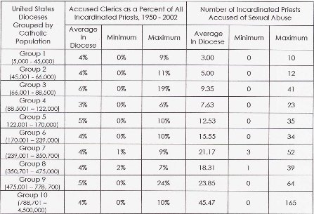 The Nature and Scope of the Problem of Sexual Abuse of Minors by Priests and Deacons Note: Our HTML text of the report is presented here as a series of webpages: The following table of contents enables you to go directly to any section of the main report. If you wish to link directly to any section of the report, the URLs of the table of contents can be used for that purpose. It is also possible to link directly to any page of the report. Just use the URL of the part, and add the page number. For example: http://www.bishop-accountability.org/reports/2004_02_27_JohnJay/index.html#p26 http://www.bishop-accountability.org/reports/2004_02_27_JohnJay/2004_02_27_Terry_JohnJay_5.htm#p94 We also provide a section-by-section table of contents to the sections