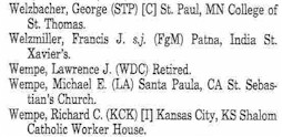 But in the 1988 Official Catholic Directory, Wempe has disappeared